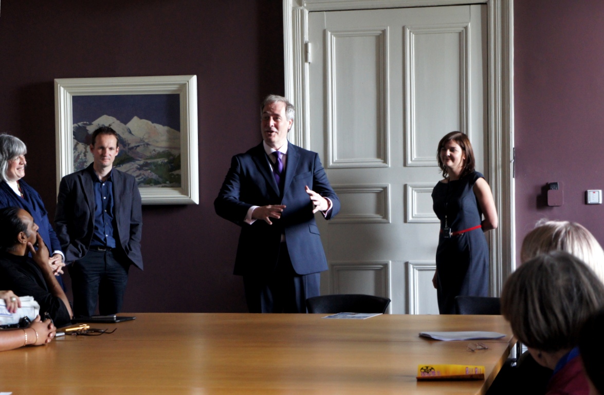 Lord Michael Bates, a supporter of the Olympic Truce and a patron of the London Peace Network, speaks about the Truce to members of the Network at the Imperial War Museum, 2012.