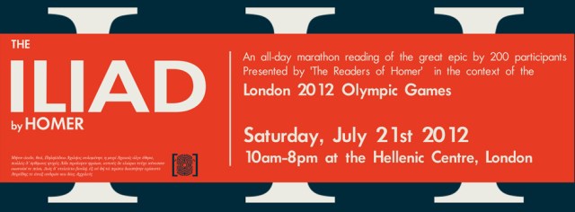 As the Olympic Torch arrives in London, The Readers of Homer warmly invite you to take part in the marathon reading of THE ILIAD which will take place on July 21st from 10am to 8pm at the Hellenic Centre in London.