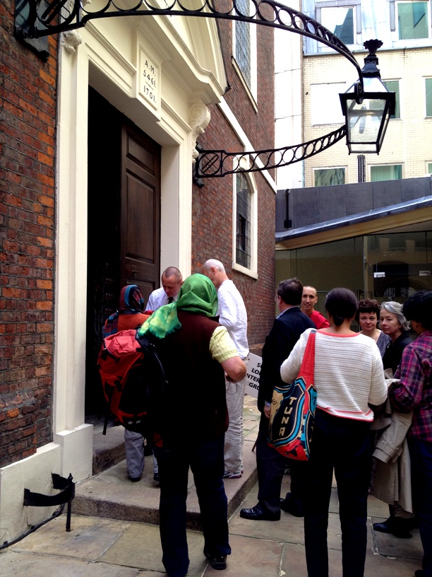 Entering Bevis Marks Synagogue, which has the longest unbroken history of worship of any synagogue in Europe. One of the congregation welcomed us in and told us the history of Judaism in the UK, the Sephardic tradition and about the congregation today.