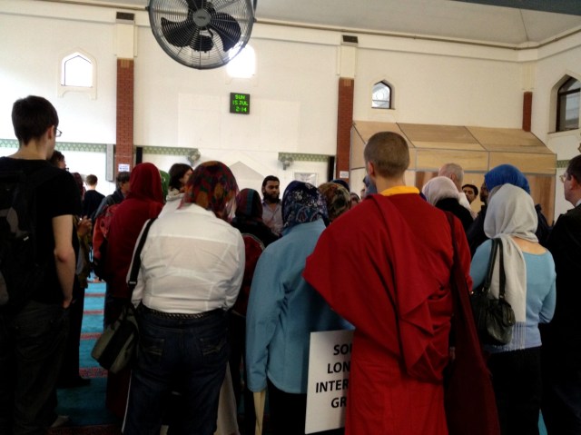 The sun shone on one of the many inter faith walks co-ordinated by the South London Inter Faith Group this weekend. This one started at Southwark Cathedral and took in Bevis Marks Synagogue, East London Mosque and Kagyu Samye Dzong. Here are some photos.