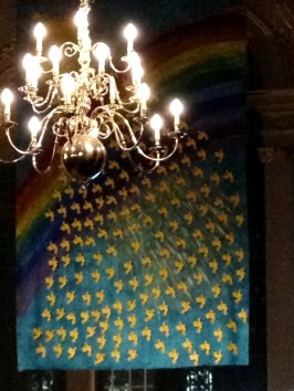 The banner in St Martin’s during the night vigil. Each dove represented one of the competing nations coming to London for the 2012 Games.